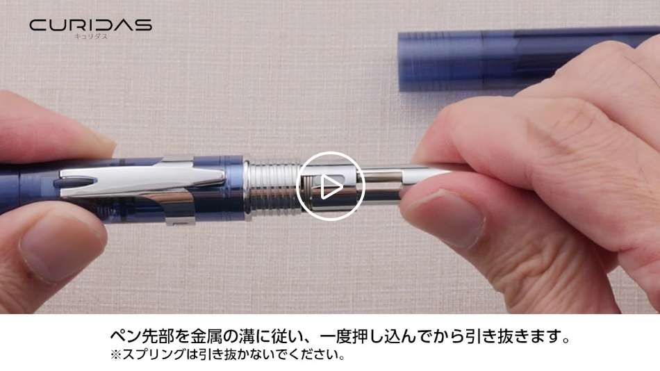 キャップ式の万年筆が抱える課題に対応したノック式の万年筆「キュリダス」が登場します。